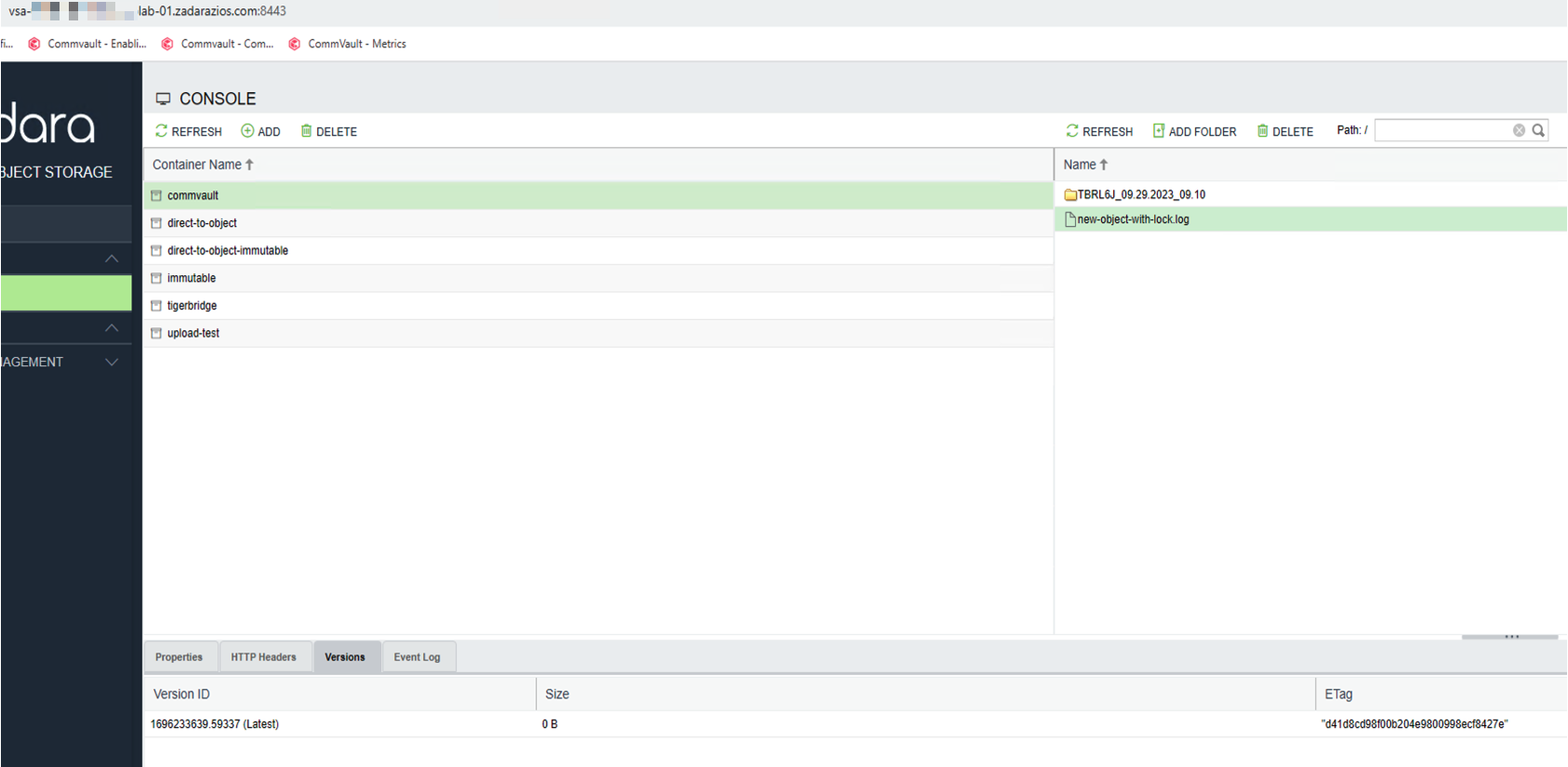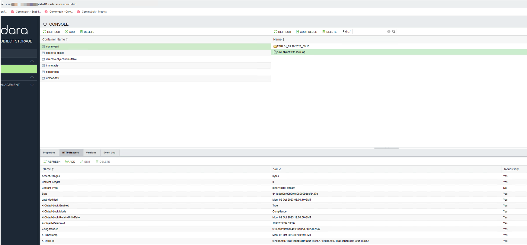- Object Lock – https://guides.zadarastorage.com/ngos-guide/latest/ngos-console.html#object-lock-containers