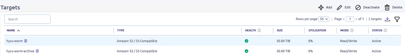 - Open the HYCU Web Console and navigate to Targets on the left menu.