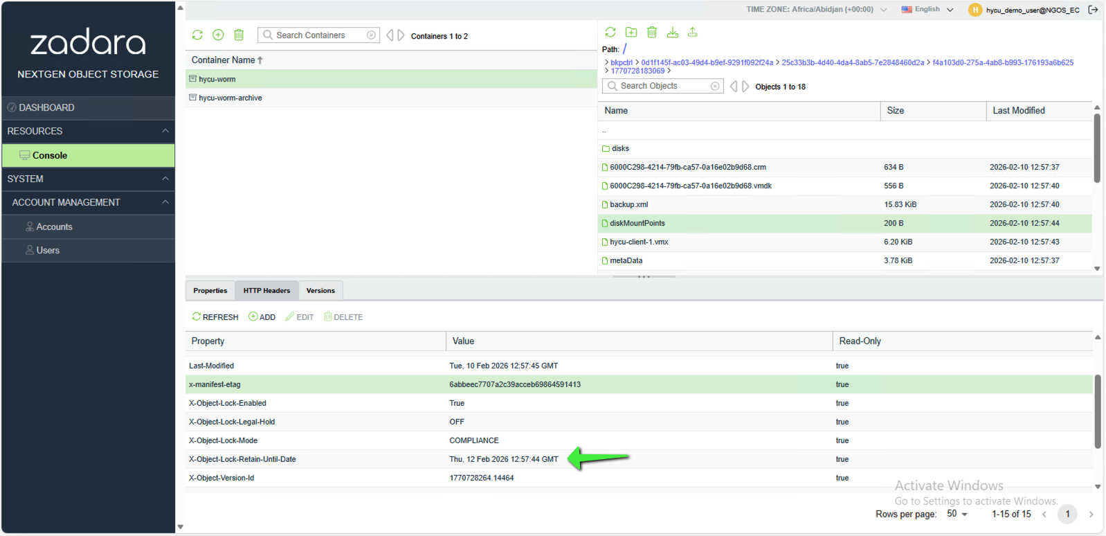 - The Object-Lock-Retain-Until-Date (i.e. the immutable retention date) date can be found under the HTTP Headers tab in the South pane for each Object.